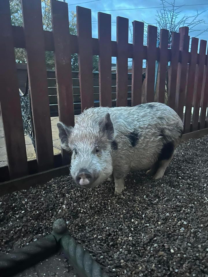 Polly Pocket, the youngest member of our piggy family at Stubby Pigs, is the daughter of Tiny Tim and Pumpkin, and the little sister to Trousers ( Big Boy ). Even though she is just over a year old, Polly Pocket has already made a name for herself as a superstar, having appeared on BBC news and radio shows. With her being the youngest, Polly Pocket loves getting into mischief. She recently gained viral fame on TikTok after getting stuck in a barrel while attempting to steal a chicken egg. She is the most playful by nature, and is often seen zooming, spinning in circles during our piggy walks. Polly Pocket was the last piglet born before we made the decision to have our boars castrated, focusing instead on mini pig rescue cases. This decision was made since we noticed an increasing number of pigs being abandoned and listed on sale sites that weren't selling or finding suitable homes. ❤️🩹